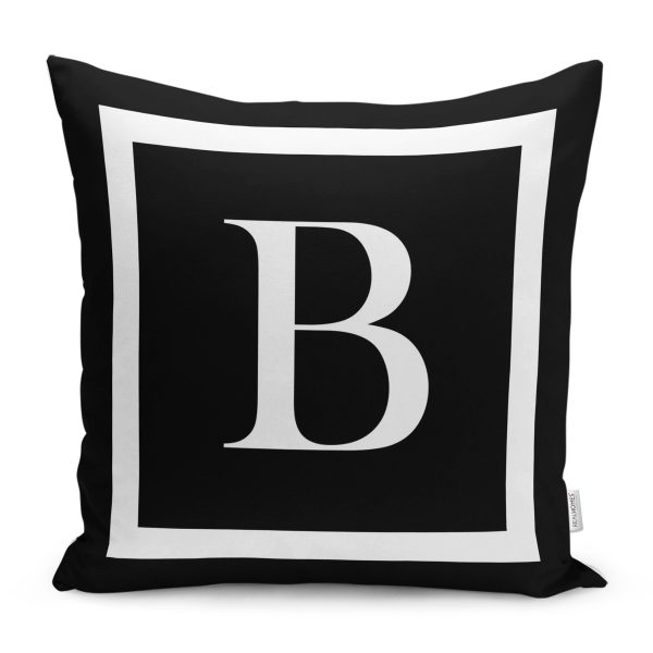 Siyah Zemin Beyaz Çerçeveli B Harfi Dijital Baskılı Kırlent Kılıfı