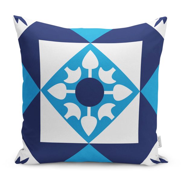 Geometrik Mavi Çini Desenli Modern Yastık Kırlent Kılıfı