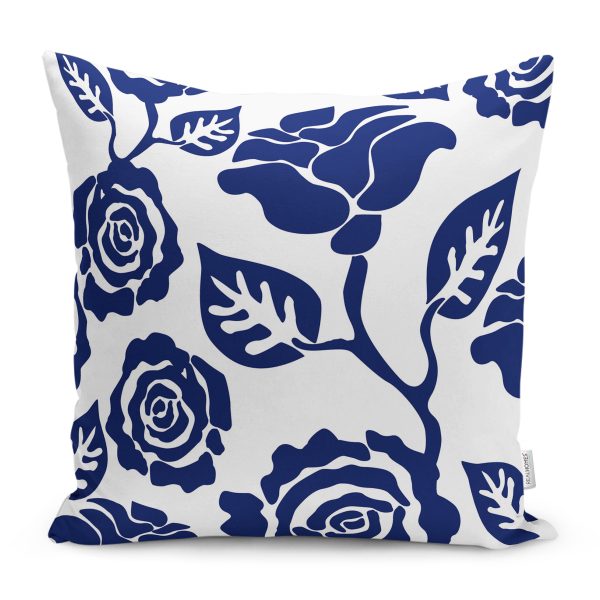 Beyaz Zeminli Lacivert Gül Tasarımlı Modern Yastık Kırlent Kılıfı