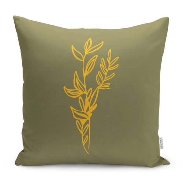 Yeşil Zeminli Sarı Onedraw Çizimli Dekoratif Yastık Kırlent Kılıfı