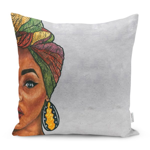 Etnik Afrika Kadın Tasarımlı Dijital Baskılı Yastık Kırlent Kılıfı