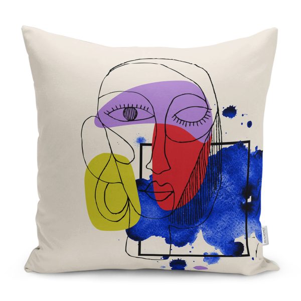 Suluboya Yüz Motifli Dijital Baskılı Dekoratif Yastık Kırlent Kılıfı