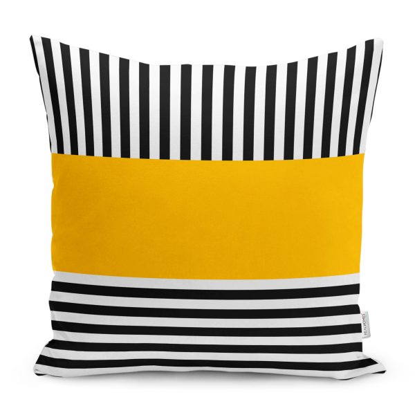 Sarı Zemin Siyah Çizgili Dijital Baskılı Modern Yastık Kırlent Kılıfı