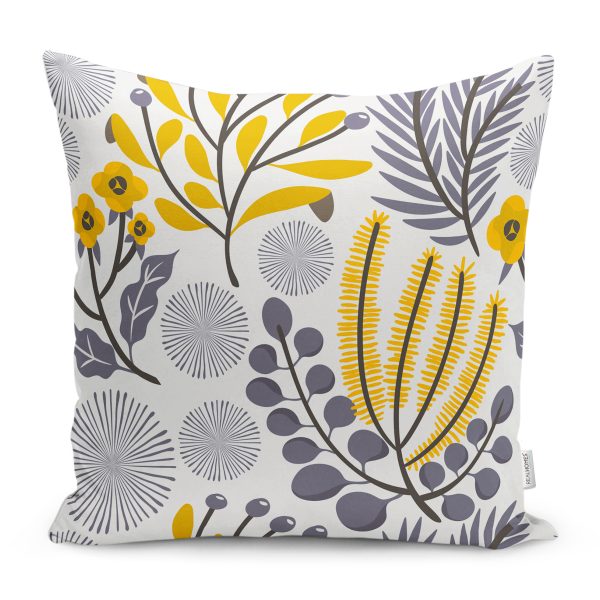 Sarı Zeminli Tropik Yaprak Motifli Yastık Kırlent Kılıfı