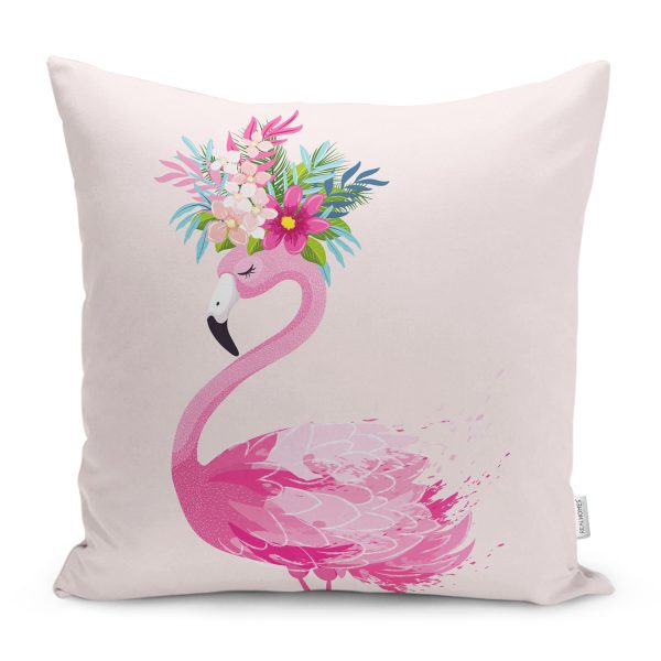 Pembe Flamingo Motifli Dijital Baskılı Yastık Kırlent Kılıfı
