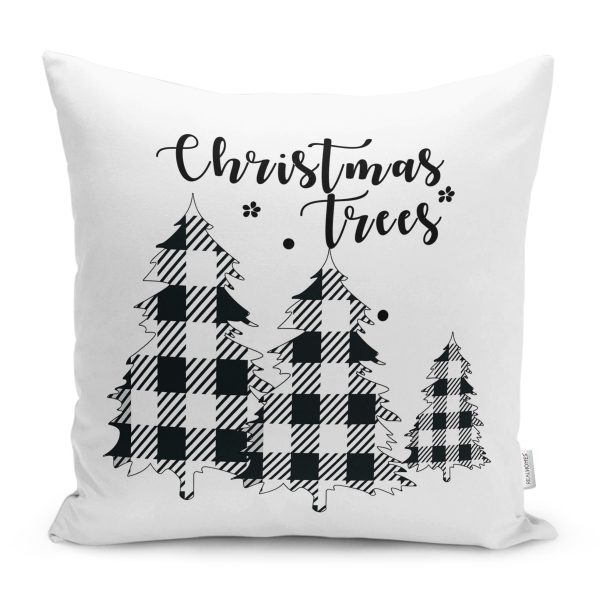 Christmas Temalı Ekose Çam Ağacı Motifli Yastık Kırlent Kılıfı