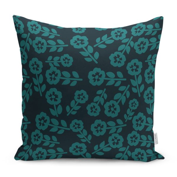 Koyu Füme Yeşil Çiçek Motifli Dekoratif Yastık Kırlent Kılıfı