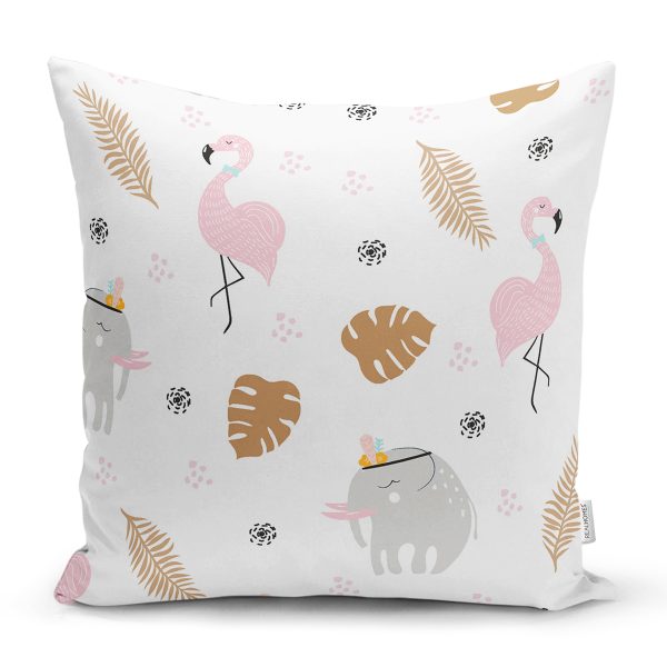 Realhomes Sevimli Flamingo ve Fil Desenli Özel Tasarım Dijital Baskılı Modern Yastık Kırlent Kılıfı