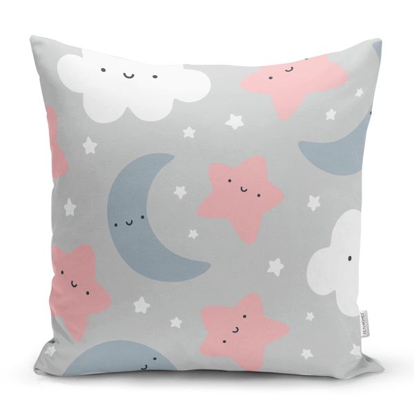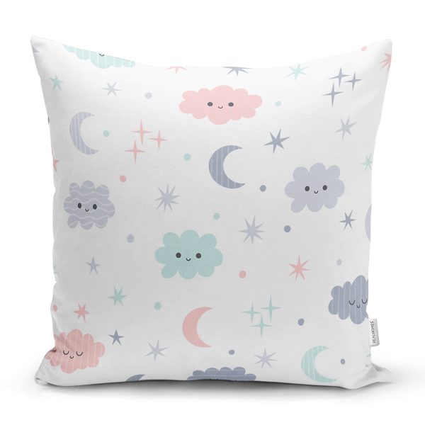 Ay Bulut Ve Yıldız Motifli Dijital Baskılı Özel Tasarım Modern Yastık Kırlent Kılıfı