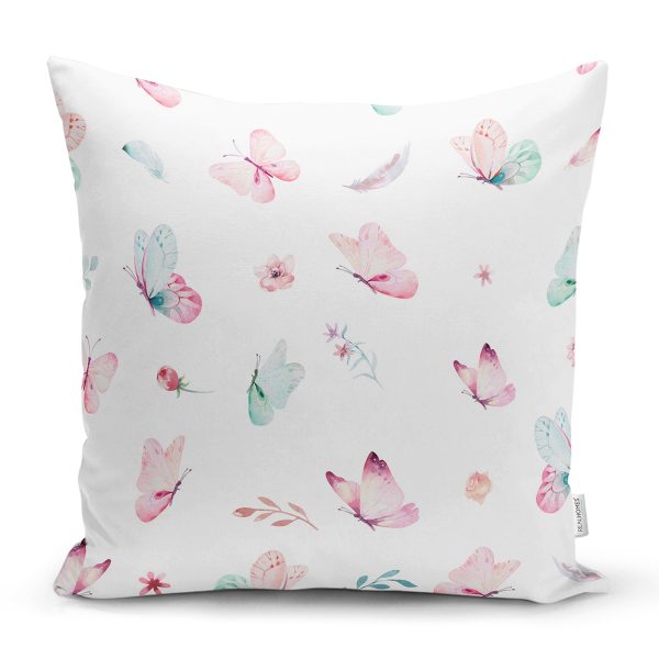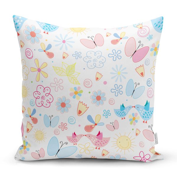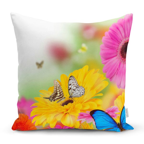 Çiçek Ve Kelebek Desenli Dijital Baskılı Dekoratif Modern Yastık Kırlent Kılıfı