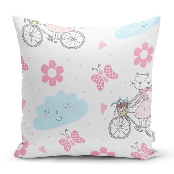 Realhomes Bisikletli Kedicik Özel Tasarım Dijital Baskılı Modern Yastık Kırlent Kılıfı