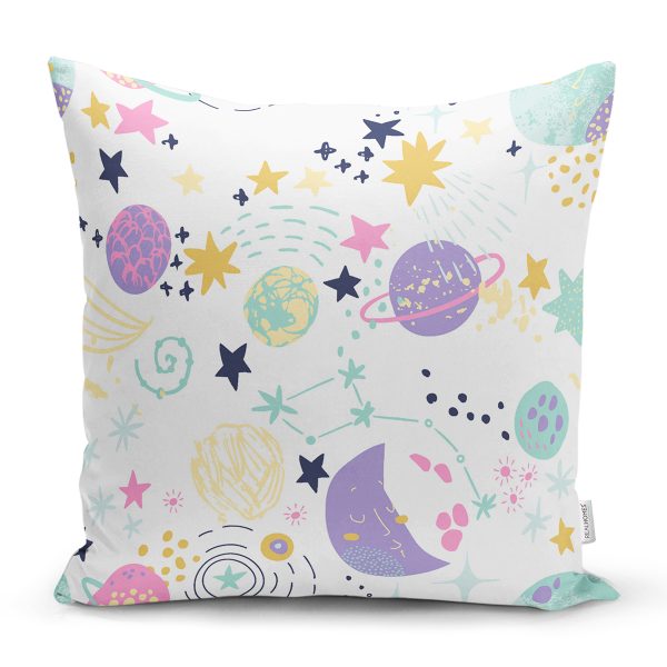 Gökyüzü Temalı Yıldız Ay Ve Bulut Desenli Dijital Baskılı Özel Tasarım Modern Yastık Kırlent Kılıfı
