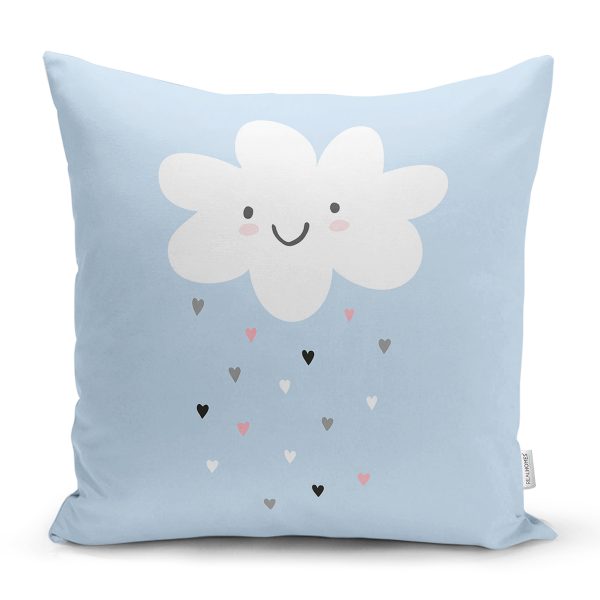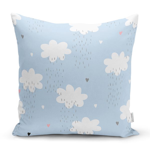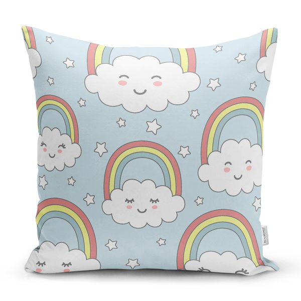 Sevimli Bulutlar Ve Gökkuşağı Motifli Dijital Baskılı Özel Tasarım Modern Yastık Kırlent Kılıfı