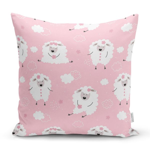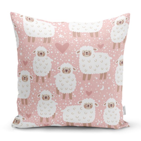 Pembe Zeminde Koyun Desenli Dijital Baskılı Özel Tasarım Modern Yastık Kırlent Kılıfı