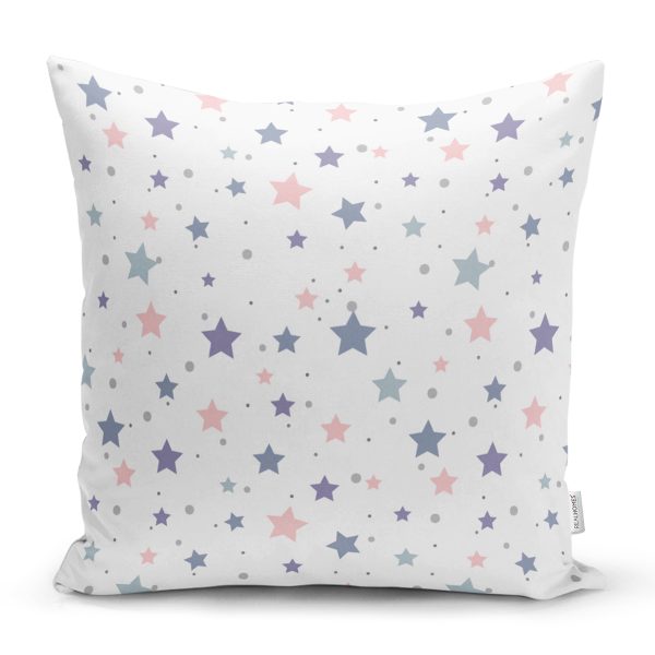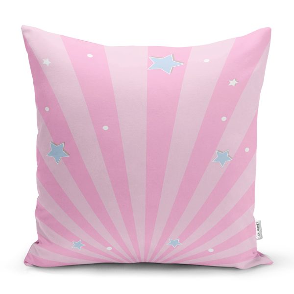 Pembe Çizgili Zemin Ve Yıldızlar Özel Tasarımlı Dijital Baskılı Modern Yastık Kırlent Kılıfı