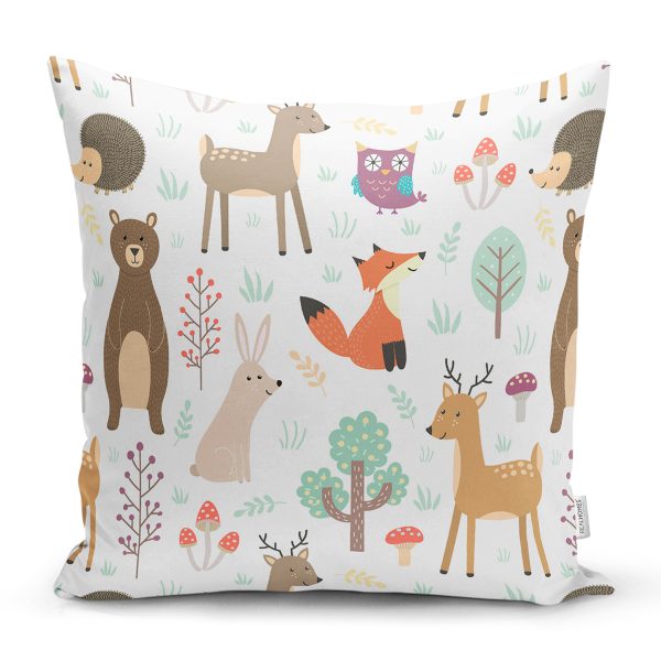 Sevimli Orman Hayvanları Desenli Dijital Baskılı Özel Tasarım Modern Yastık Kırlent Kılıfı