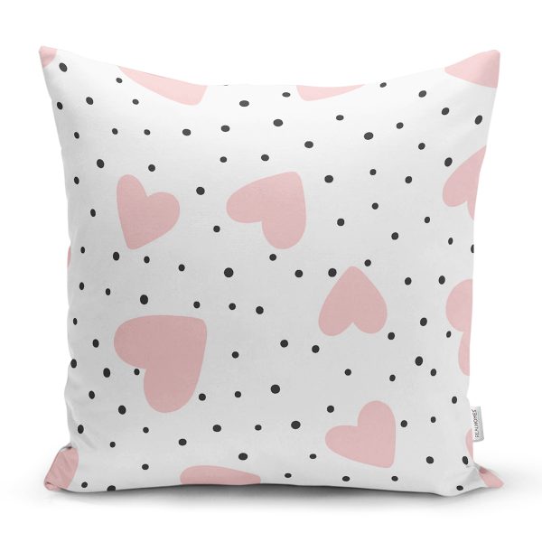 Puanlı Zeminde Pembe Kalpler Dijital Baskılı Özel Tasarım Modern Yastık Kırlent Kılıfı