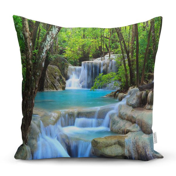 Şelale Manzaralı Tasarım Dijital Baskılı Dekoratif Modern Yastık Kırlent Kılıfı