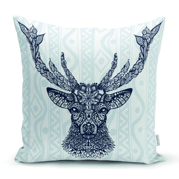 Lacivert Geyik İllüstrasyon Desenli Dijital Baskılı Dekoratif Yastık Kırlent Kılıfı