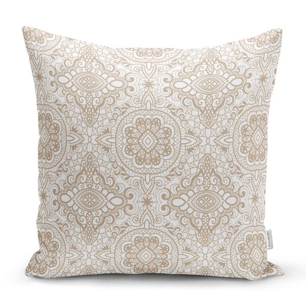 Krem Zemin Kahverengi Tasarım Dijital Baskılı Dekoratif Yastık Kırlent Kılıfı