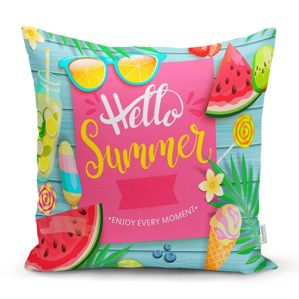 Hello Summer Özel Tasarımlı Modern Dijital Yastık Kırlent Kılıfı