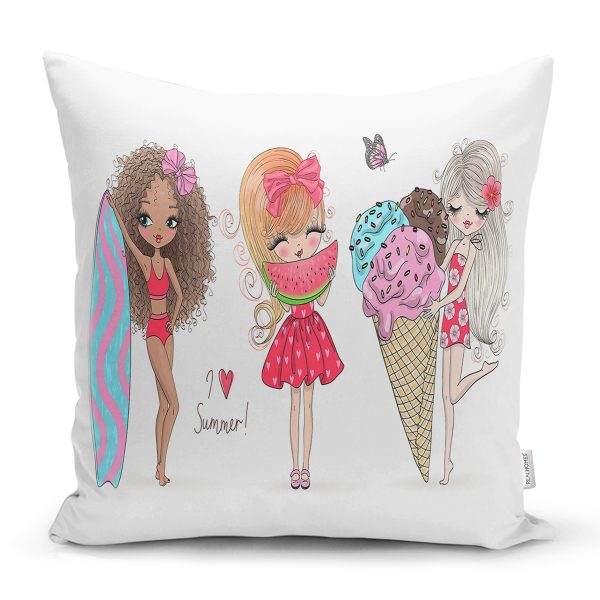 Summer Fashion Çizimli Dijital Baskılı Modern Yastık Kırlent Kılıfı