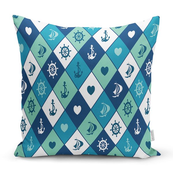 Denizci Temalı Çapa Dümen Gemi Figürlü Özel Tasarım Dijital Baskılı Modern Yastık Kırlent Kılıfı