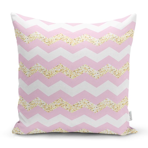 Realhomes Pembe Altın Varaklı Çizgi Motifli Modern Yastık Kırlent Kılıfı