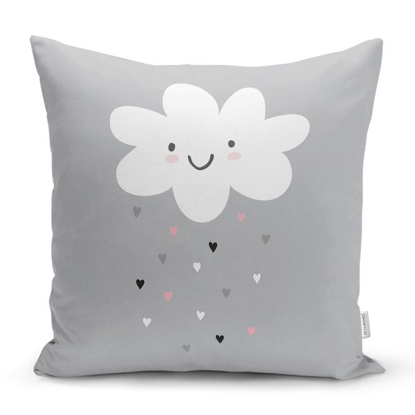 Realhomes Gri Zeminde Gülümseyen Bulut Modern Yastık Kırlent Kılıfı