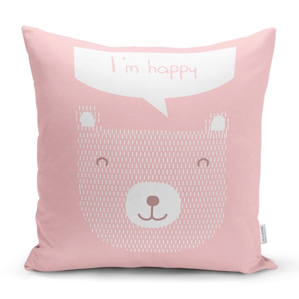 Pembe Zeminde Mutlu Ayıcık Desenli Bebek Odası Yastık Kırlent Kılıfı