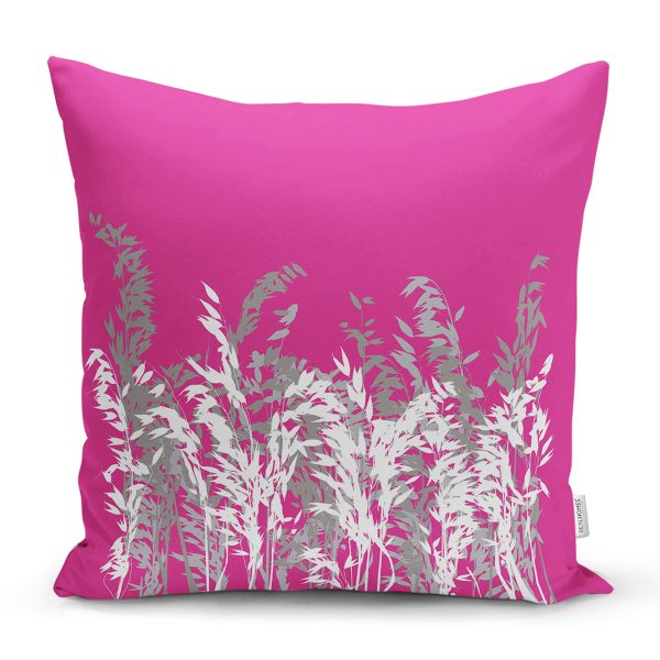 Fuşya Zeminde Beyaz Çiçek Dijital Baskılı Kırlent Kılıfı