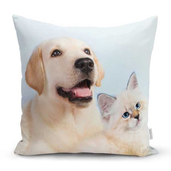 Köpek ve Kedili Dijital Baskılı Modern Yastık Kırlent Kılıfı