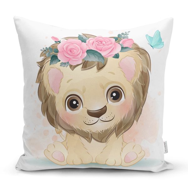 Sevimli Yavru Aslan Çocuk Odası Dijital Baskılı Dekoratif Yastık Kırlent Kılıfı