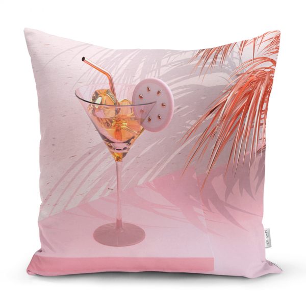 Palmiye ve Kadeh Resimli Dijital Baskılı Yastık Kırlent Kılıfı
