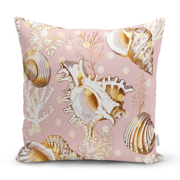 Pembe Zeminde Deniz Kabukları Modern Yastık Kırlent Kılıfı