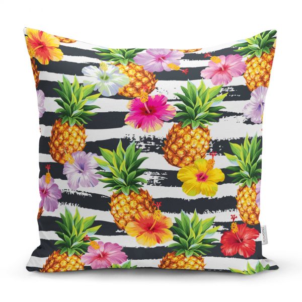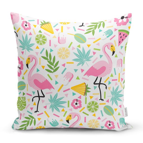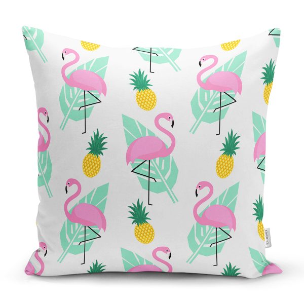 Ananaslar ve Flamingo Tasarımlı Dijital Baskılı Modern Yastık Kırlent Kılıfı