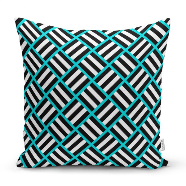 Mavi Çizgili Siyah Beyaz Desenli Dekoratif Yastık Kırlent Kılıfı