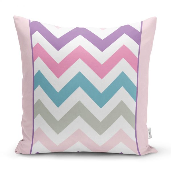 Renkli Zigzag Motifli Pembe Zeminli Modern Yastık Kırlent Kılıfı