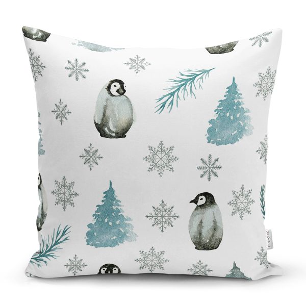 Realhomes Sevimli Penguen ve Kar Taneleri Özel Tasarım Dijital Baskılı Modern Yastık Kırlent Kılıfı