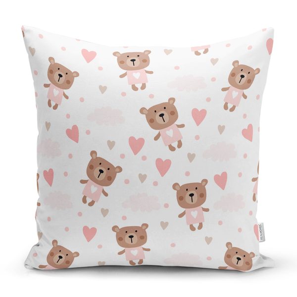 Sevimli Ayıcık Motifli Dijital Baskılı Özel Tasarım Modern Yastık Kırlent Kılıfı