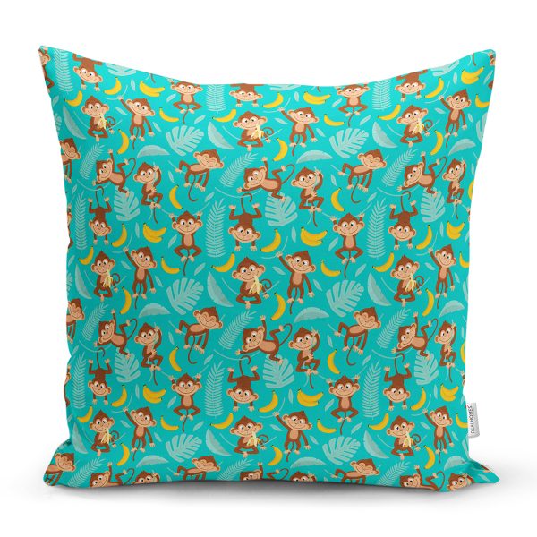 Maymun Ve Muz Desenli Dijital Baskılı Özel Tasarım Modern Yastık Kırlent Kılıfı
