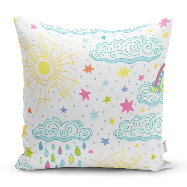 Gökyüzü Bulut Ve Yıldızlar Desenli Dijital Baskılı Özel Tasarım Modern Yastık Kırlent Kılıfı