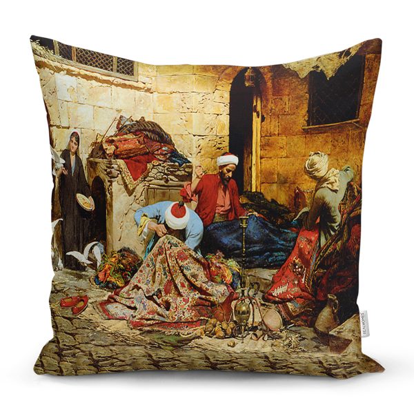 Osmanlı Kapalı Çarşı Yorgancı Motifli Dijital Baskılı Dekoratif Modern Yastık Kırlent Kılıfı