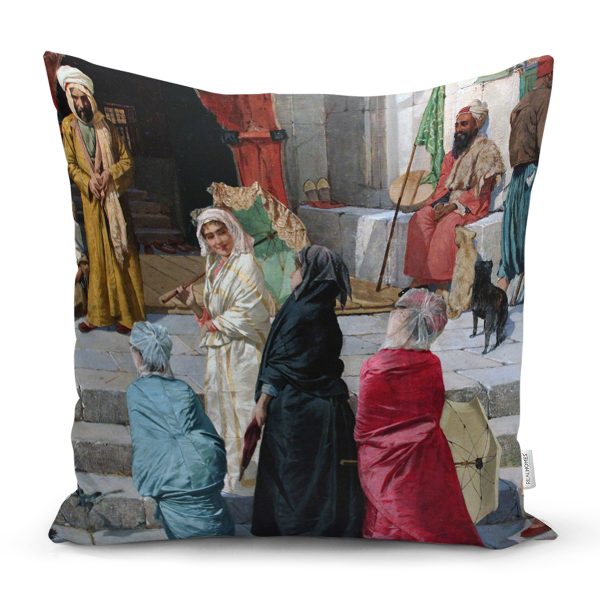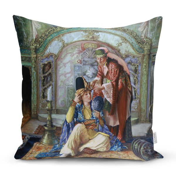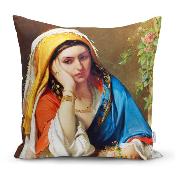 Osmanlı Temalı Kadınlar Yağlı Boya Dijital Baskılı Dekoratif Modern Yastık Kırlent Kılıfı