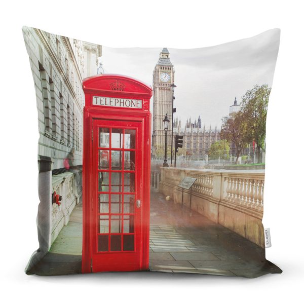 Telefon Kulübesi Motifli Dijital Baskılı Dekoratif Yastık Kırlent Kılıfı