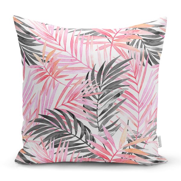 Pembe Gri Yaprak Temalı Dijital Baskılı Dekoratif Yastık Kırlent Kılıfı