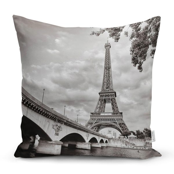 Eyfel Kulesi Tasarımlı Dijital Baskılı Dekoratif Yastık Kırlent Kılıfı