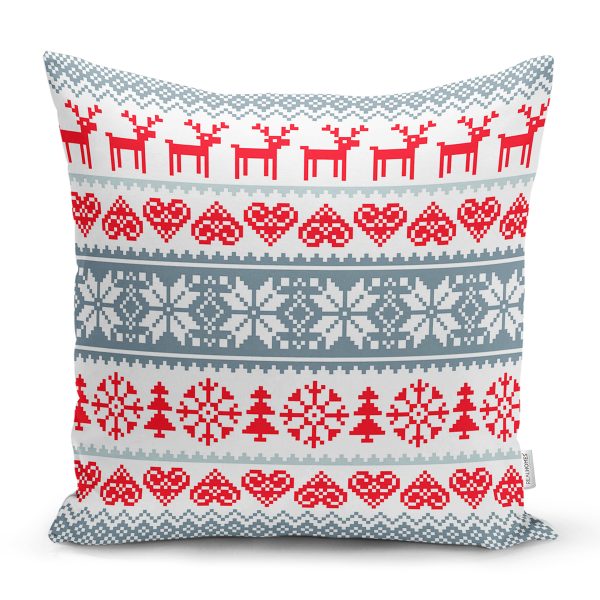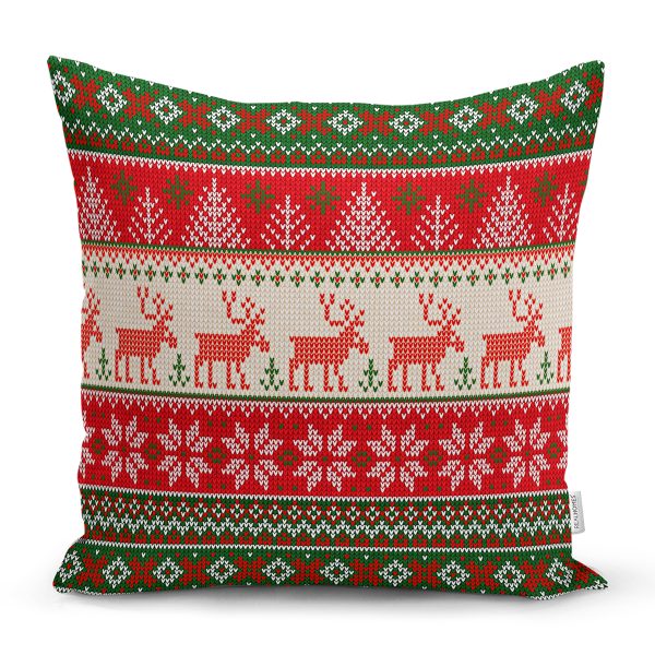 Yılbaşı Temalı Kanaviçe Desenli Özel Tasarımlı Dijital Baskılı Modern Yastık Kırlent Kılıfı