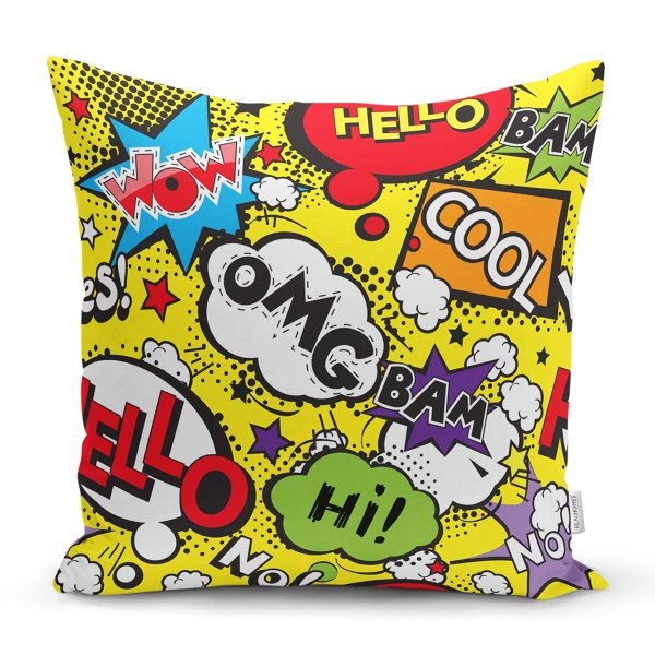 Sarı Zeminde Popart Özel Tasarımlı Dijital Baskılı Modern Yastık Kırlent Kılıfı