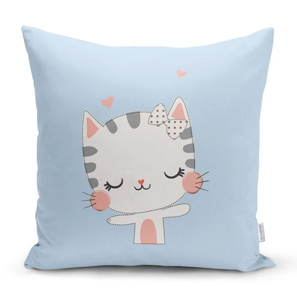 Mavi Zeminde Sevimli Kedicik Desenli Modern Yastık Kırlent Kılıfı